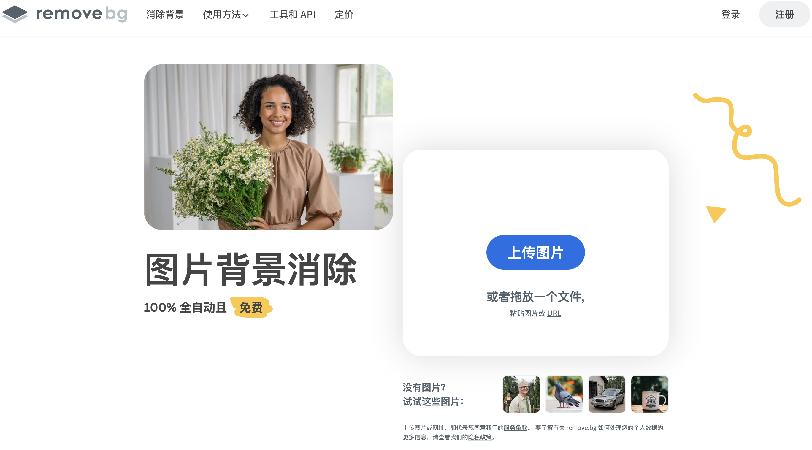 Removebg是一个提供免费在线抠图的在线网站,能够帮助我们实现在线一键抠图,这个网站使用了先进的人工智能技术,可以智能地识别图片中的人物、物体、动物等,并且可以处理复杂的细节,比如头发、羽毛、毛皮等。你不需要安装任何软件,只需要上传图片或输入图片的URL,就能实现完美的一键抠图。