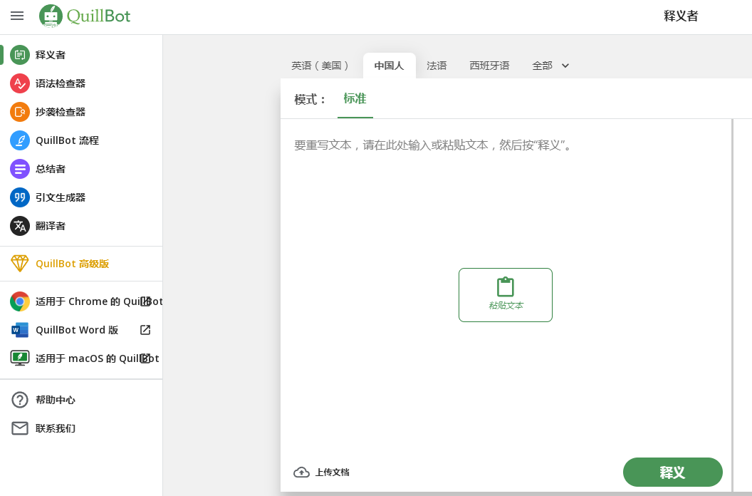 用户可以将文本复制粘贴到 QuillBot 的文本框中,或者上传文档进行处理。