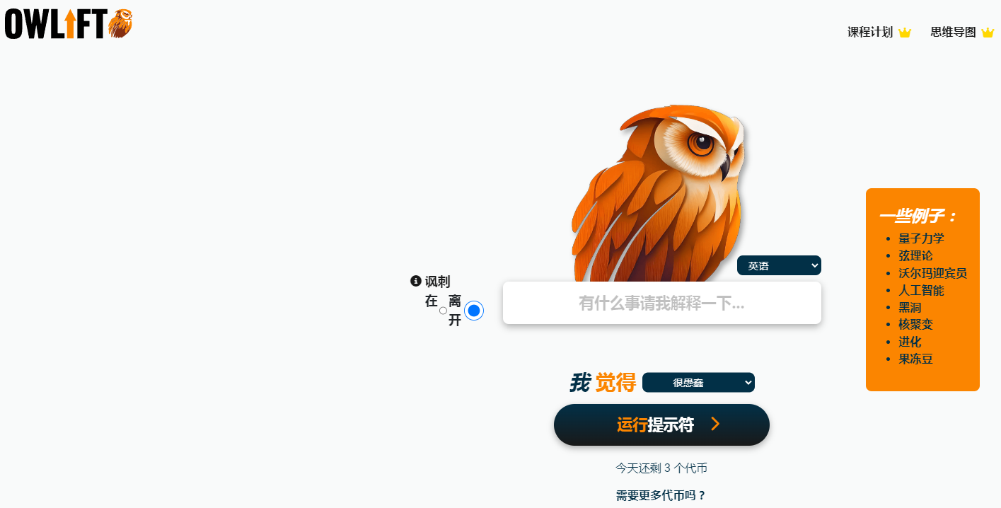 Owlift(原ELI5,即“Explain Like I'm Five”)是一个旨在将复杂概念和想法简化的平台,使用人工智能技术将主题分解为易于理解的解释,适合所有年龄段的学习者。