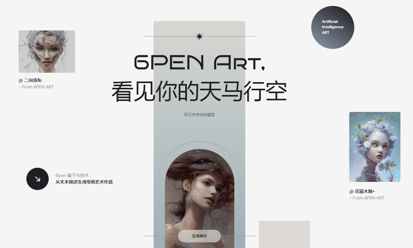 6pen Art 是一个基于AI技术的内容创作平台,由毛线球科技开发。该平台的核心功能是从用户的文本描述生成绘画艺术作品,使用户能够将自己的创意和想象转化为可视化的图像。6pen Art 提供了丰富的选项供用户调配,包括模型选择、随机种子设定、参考图添加、分辨率调整、风格修饰以及艺术家选择等,以实现最佳的生成效果。