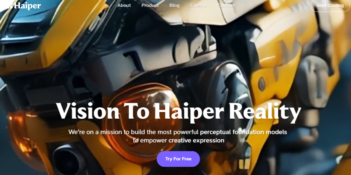 访问Haiper AI的官网(haiper.ai),点击Try For Free按钮,然后进行注册/登录
