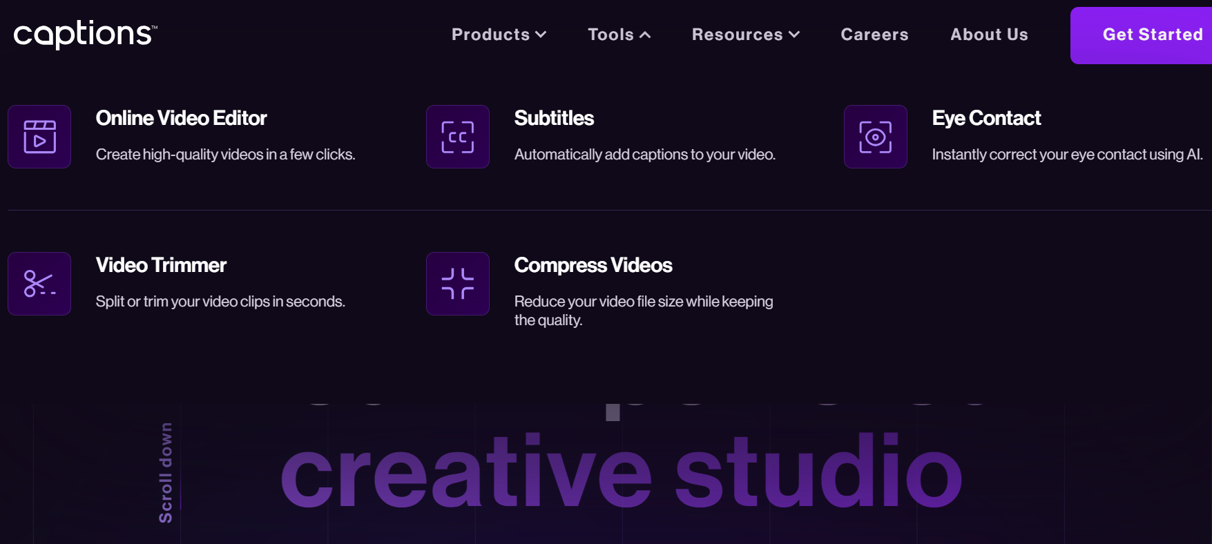 Captions是一个AI驱动的创意工作室,旨在简化创意过程并帮助用户提升叙事水平。它提供了一系列AI工具来增强视频和音频内容的制作。