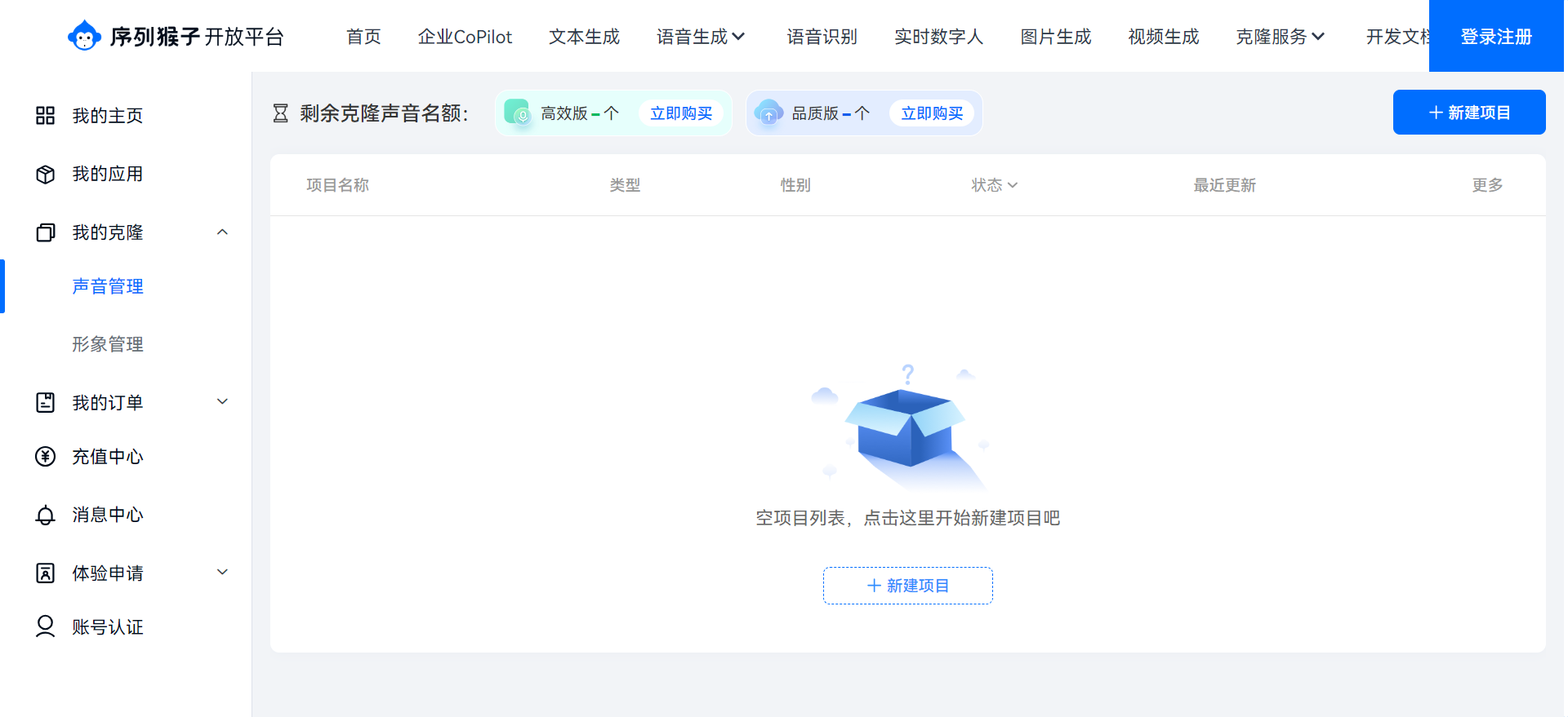 用户访问序列猴子开放平台的声音克隆服务页面。