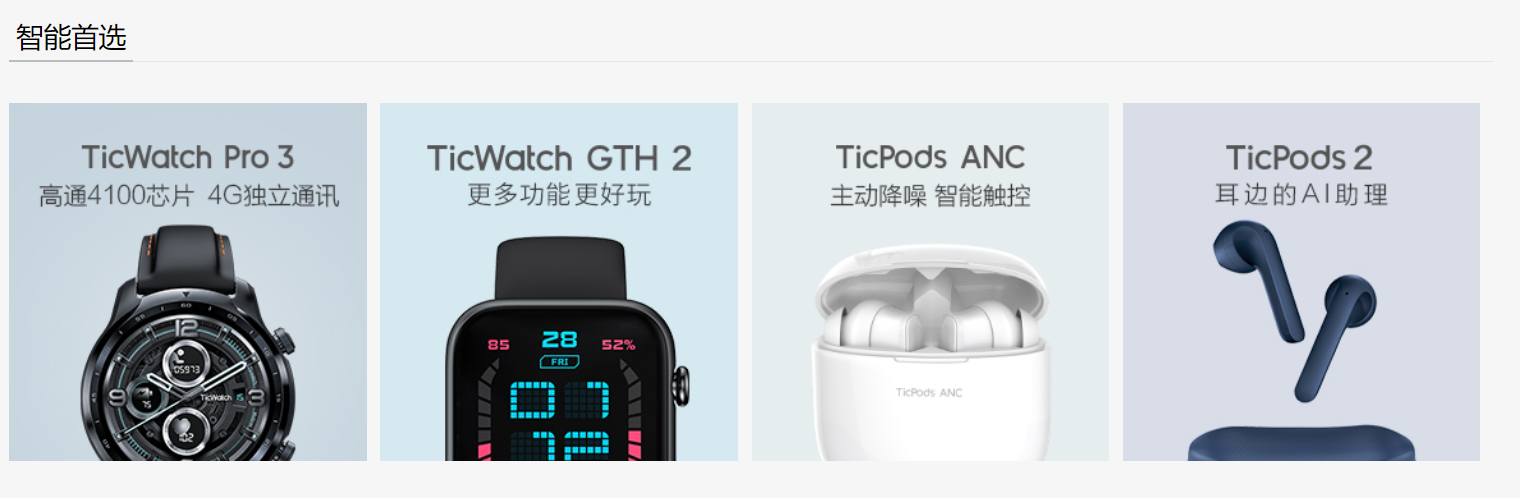 在线购买:用户可以通过网站直接购买TicWatch、TicPods、TicHome等产品。