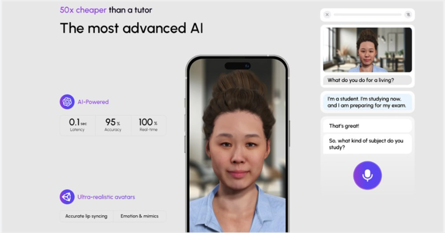 逼真的AI互动:AI导师具有语音语调和情感,提供实时反馈,帮助用户练习发音和语言技能。