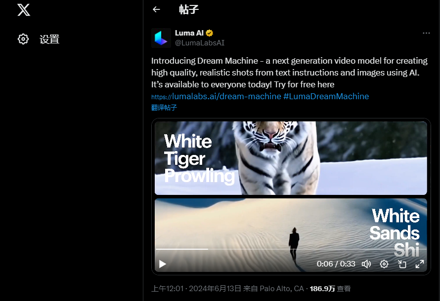 视频生成:Dream Machine是一款基于AI的视频生成工具,能够根据文本和图像快速生成高质量、逼真的视频内容。
