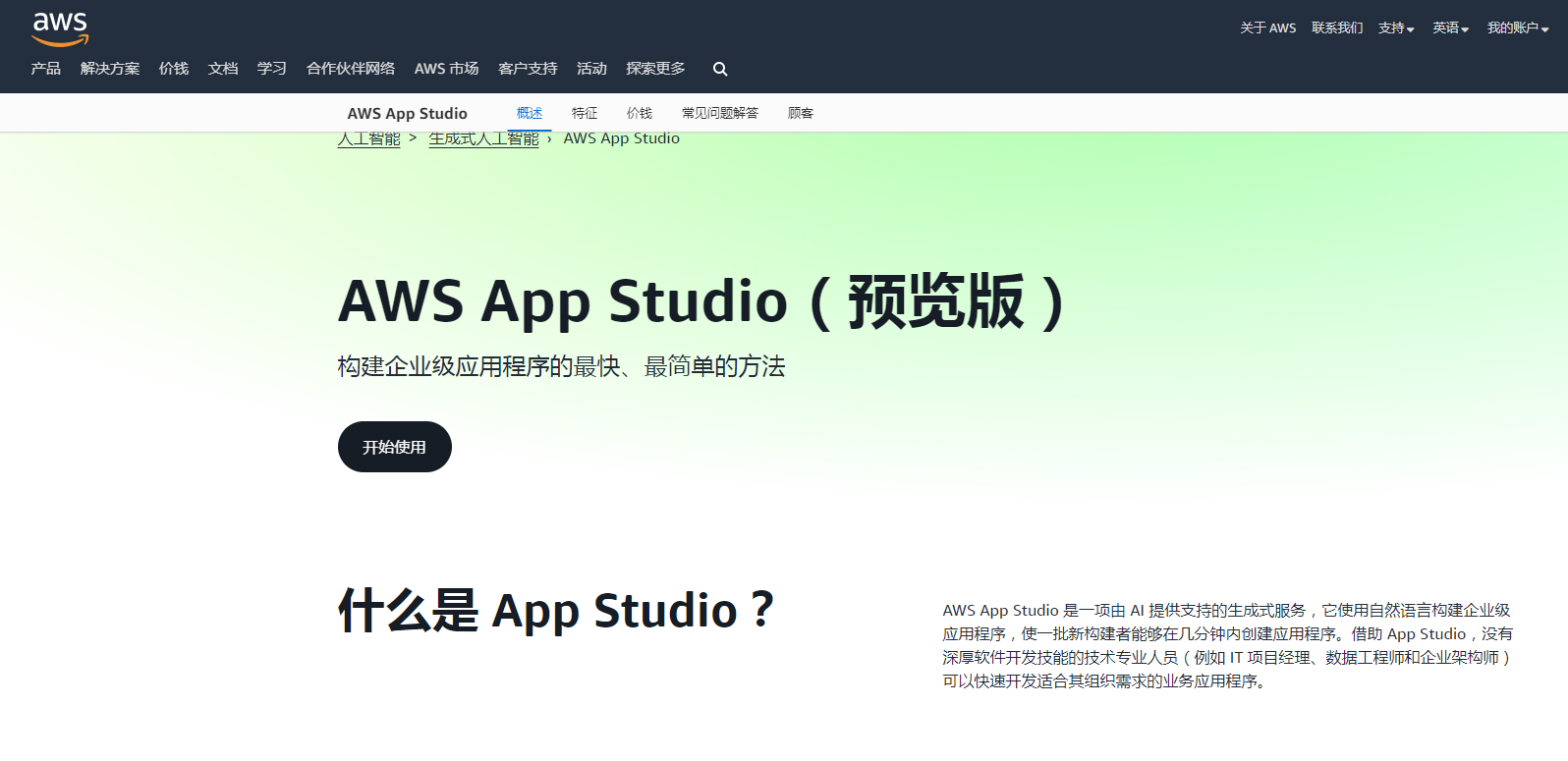 AWS App Studio 是亚马逊云服务(AWS)提供的一个低代码应用构建器,它利用生成式人工智能(AI)技术辅助用户快速开发应用程序。
