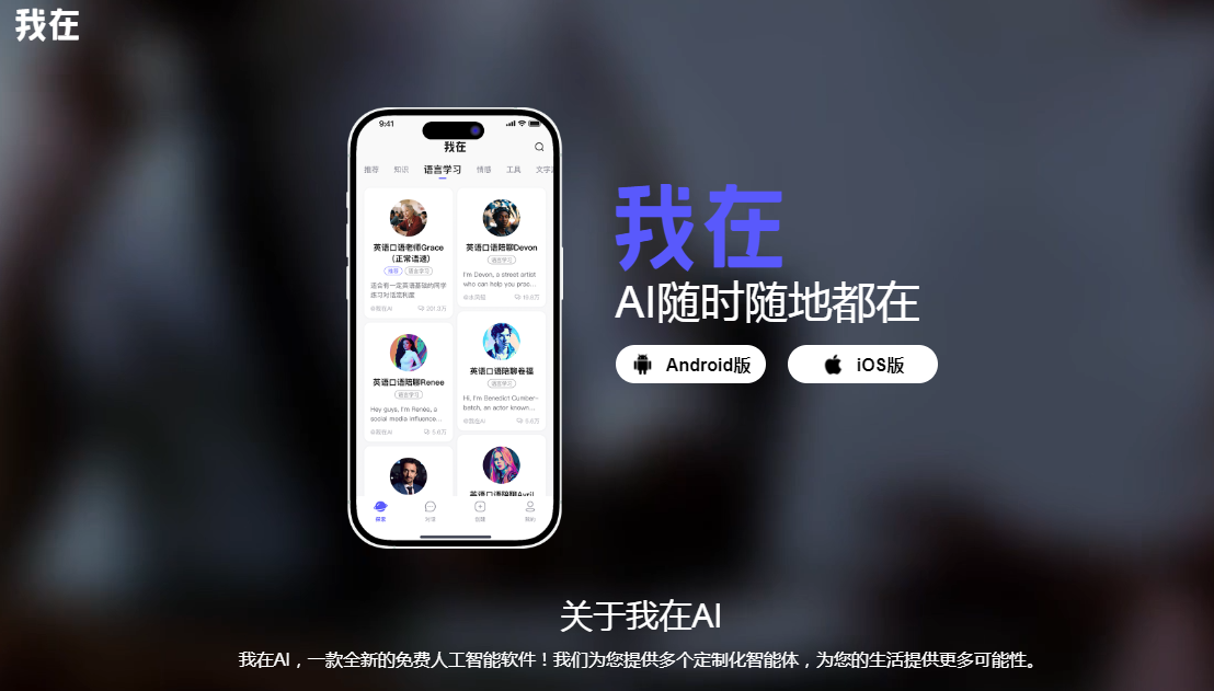 "我在AI"是由南京有零科技有限公司开发的一款免费人工智能软件,旨在通过提供定制化的智能体,为用户的生活带来更多便利和可能性。