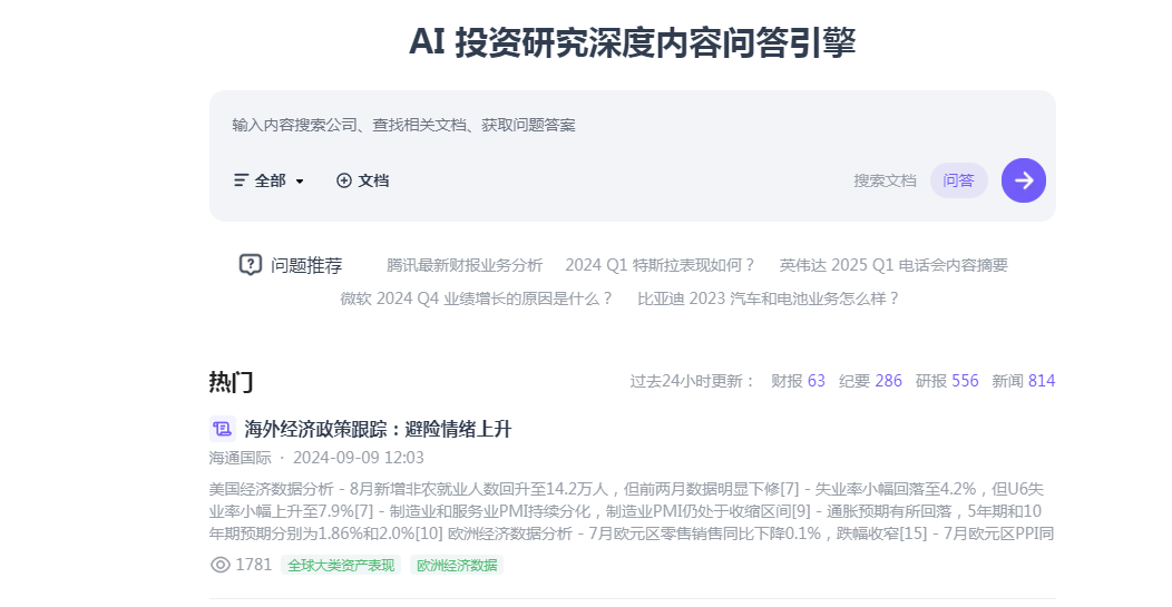 分类标签推荐 投资分析、市场研究、经济数据、AI问答、决策支持