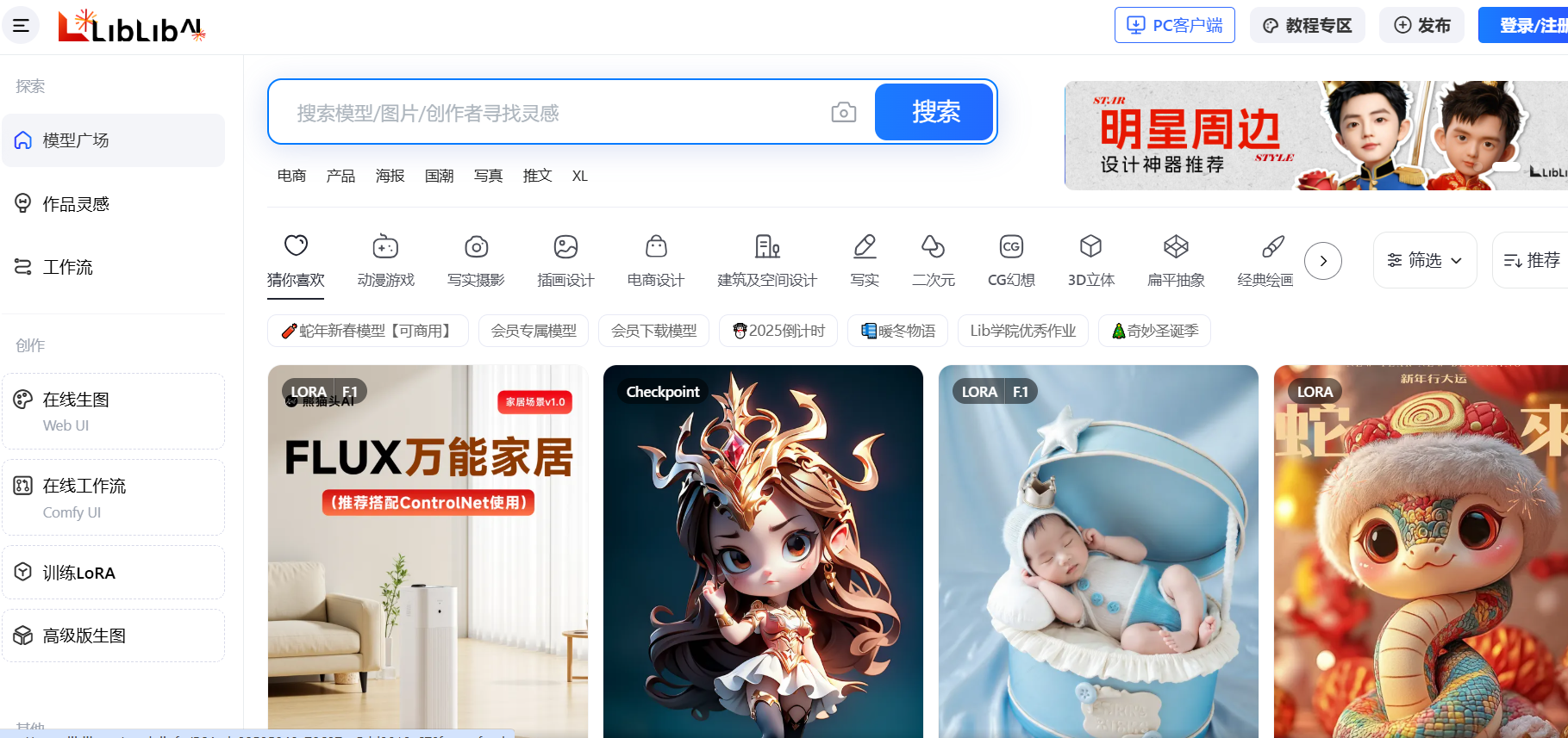 哩布哩布AI是由北京奇点星宇科技推出的一个国内领先的AI图像创作绘画平台和模型分享社区,提供在线Stable Diffusion图片生成功能和海量的模型素材库。