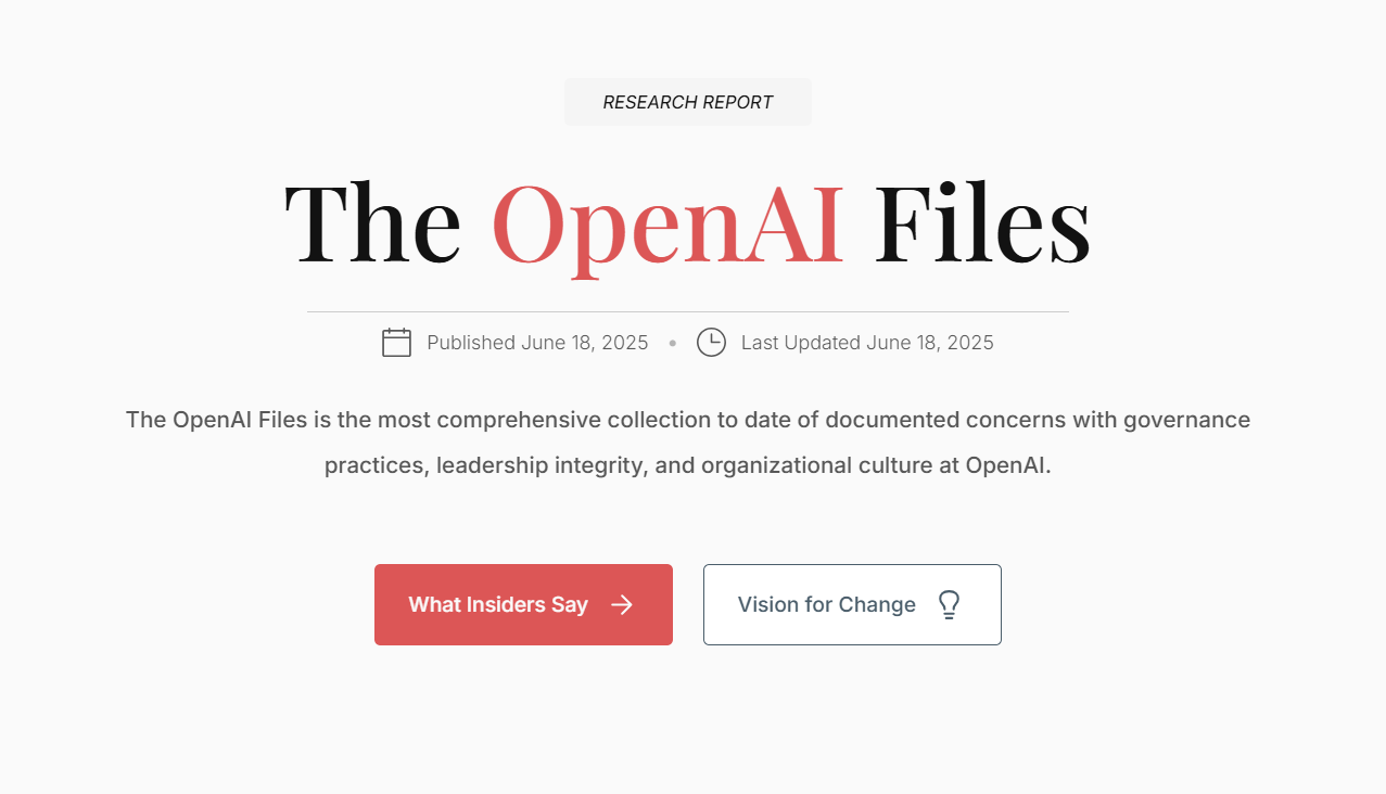 The OpenAI Files 是一个专注于记录和分析 OpenAI 治理实践、领导层诚信和组织文化问题的网站。