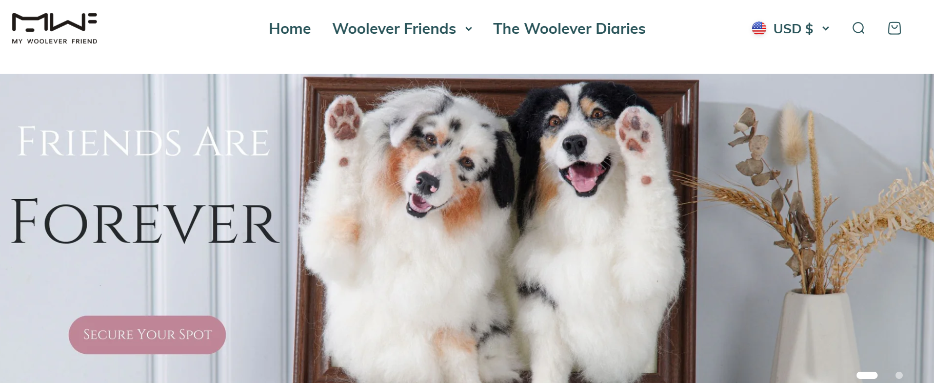 My Woolever Friend 是一家提供手工艺术宠物肖像定制服务的平台,通过针毡工艺将宠物的外貌和神态以羊毛雕塑的形式呈现出来,帮助宠物主人永久保存与宠物的美好回忆。