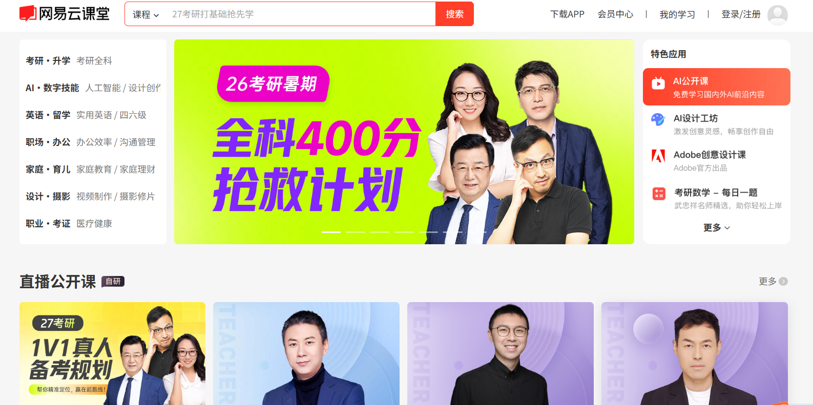 网易云课堂是网易推出的面向成人在职场景、以职业技能提升为核心的综合在线学习平台。