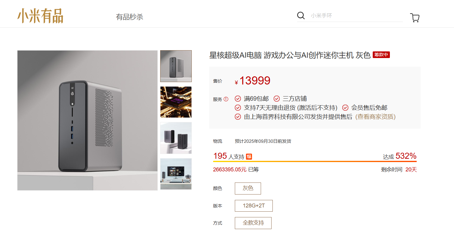 星核超级AI电脑是小米有品众筹推出的一款迷你机,凭借其强大的配置和AI性能,吸引了众多科技爱好者的关注。