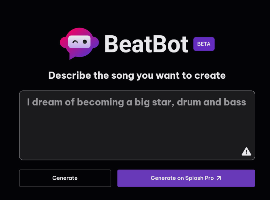 BeatBot 是 Splash 的 Al 音乐创作者,可根据文本提示创建原创短歌。