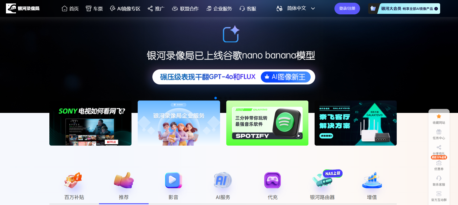 银河录像局是一家国内领先的流媒体与 AI 工具合租平台,由杭州崇宇信息科技有限公司运营,自 2019 年成立以来,已稳健运营六年。该平台致力于为用户提供高性价比的数字娱乐和生产力工具共享服务。