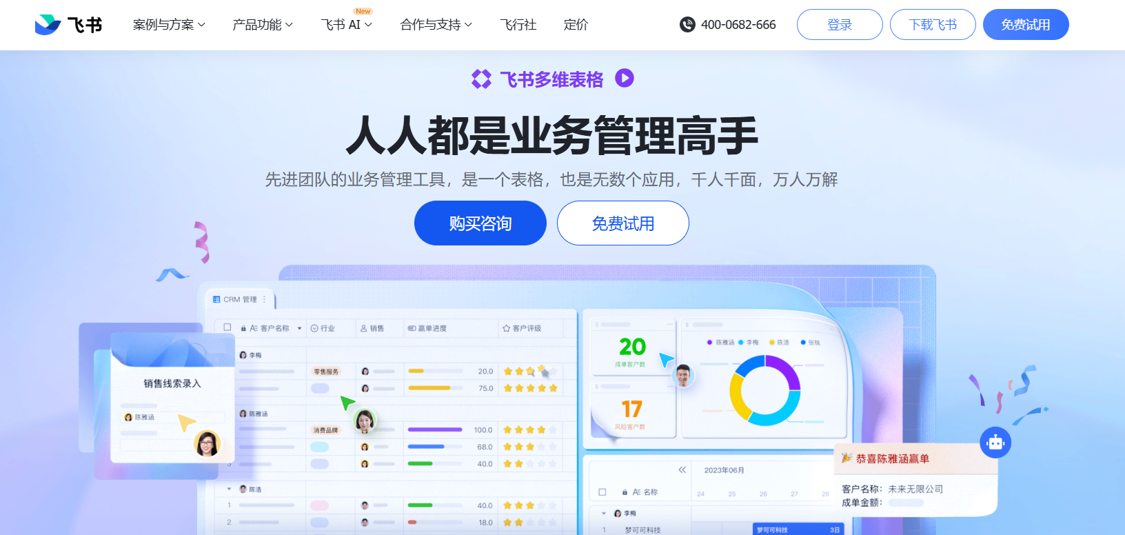 一、飞书多维表格简介 飞书多维表格是把可视化数据库、电子表格与团队协作融为一体的“新一代在线数据协作平台”。
