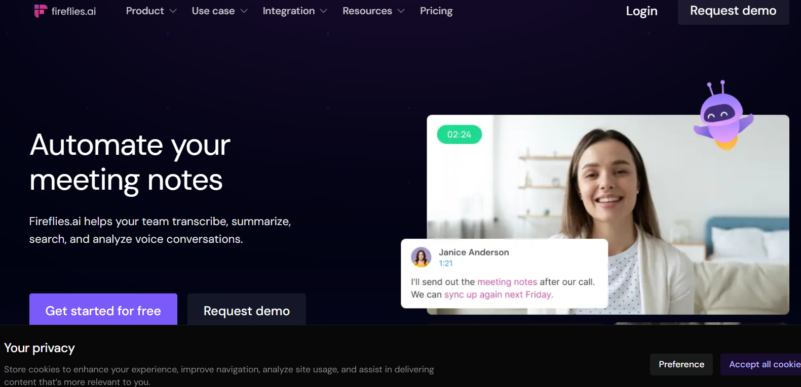 Fireflies是一款专业的智能会议记录工具,旨在协助用户高效地记录、整理和分析会议内容。借助其先进的自然语言处理和机器学习技术,Fireflies能够自动识别并记录会议中的关键信息,并生成有用的会议记录和摘要。