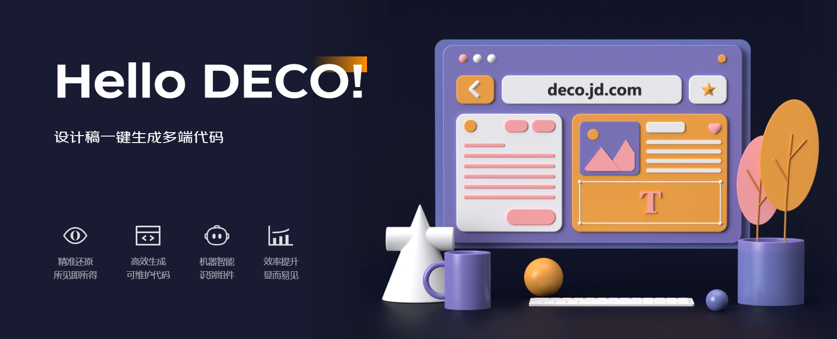 Deco 是京东推出的AI一键智能将设计稿生成多端代码的工具,支持生成 Taro、React、Vue、HTML等。Deco 是 Design 和 Code 的两个词的合并,代表 Design To Code,即从设计稿生成代码。