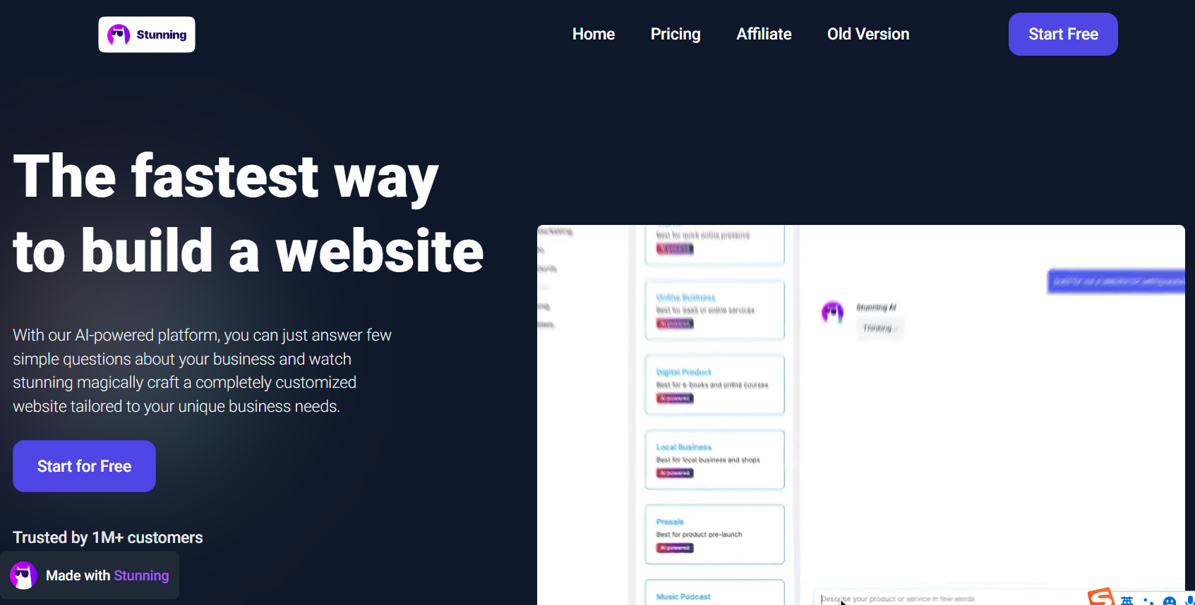 网站生成:Stunning AI 可以根据用户的输入生成网站,包括个人网站、企业网站、商店网站等。