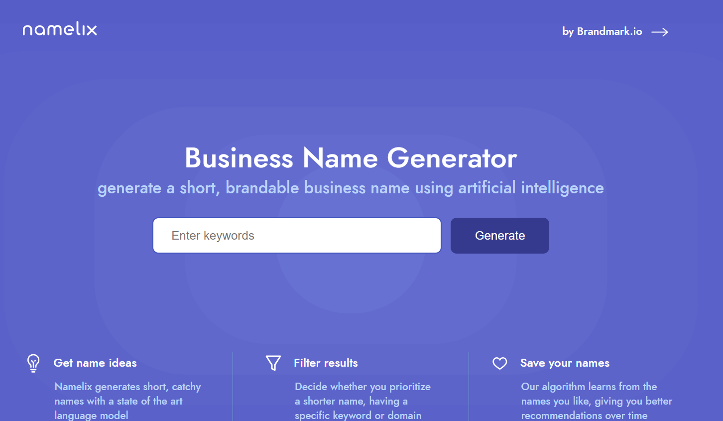 - **生成名称**:根据用户的输入,Namelix将生成一系列建议名称。