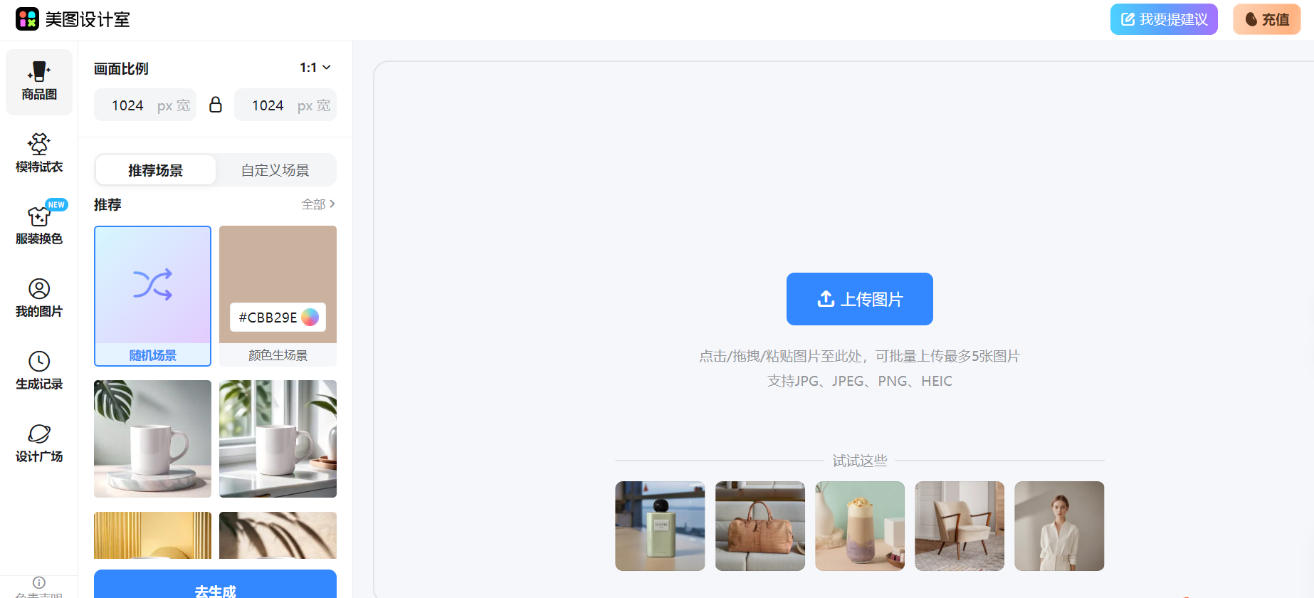 美图ai商品图,上传一张图片,可以AI生成场景图,精美电商图片一键生成,免费试用AI智能抠图,一键背景变透明,选择场景后即可生成对应图片,可用于电商推广、市场宣传等众多场景。美图秀秀最新AI功能,一键输出商品摄影图,无需拍摄与后期。简单好用,低成本高效率。