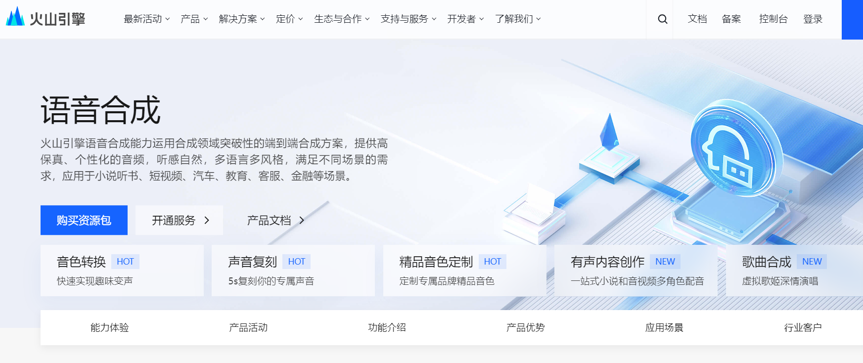 高质量语音输出:火山引擎TTS采用先进的语音合成技术,可以生成高质量、自然、流畅的语音输出。