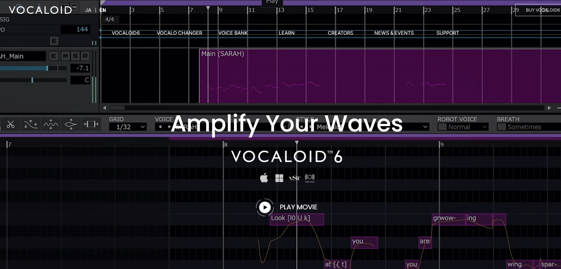 自2003年发布首个版本以来,Yamaha在迎接20周年纪念之前发布了跨版本大升级VOCALOID 6,加入VOCALOID:AI的AI技术以来其歌唱引擎更佳的自然细腻,更强大的编辑工具可以调节重音、颤音、节奏感等等参数。VOCALOID 6新功能: