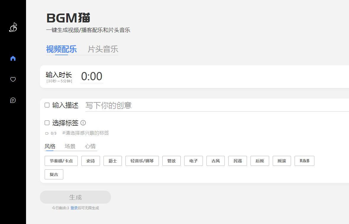4. **生成音乐**:提交信息后,BGM猫将自动生成背景音乐,并提供预览。