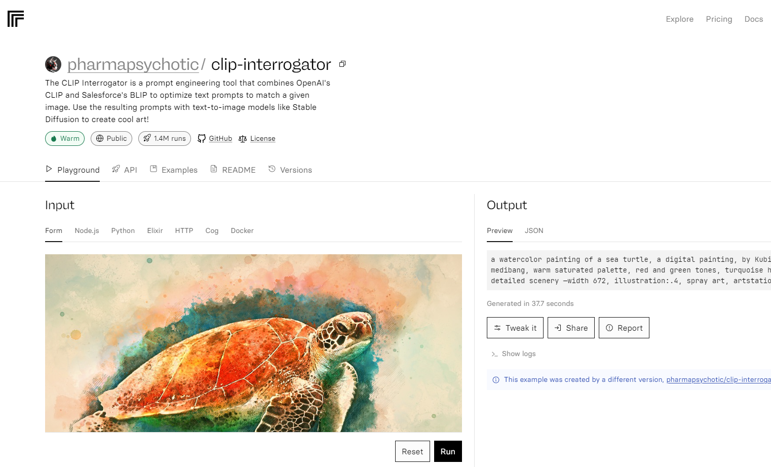 CLIP Interrogator官网: https://replicate.com/pharmapsychotic/clip-interrogator
