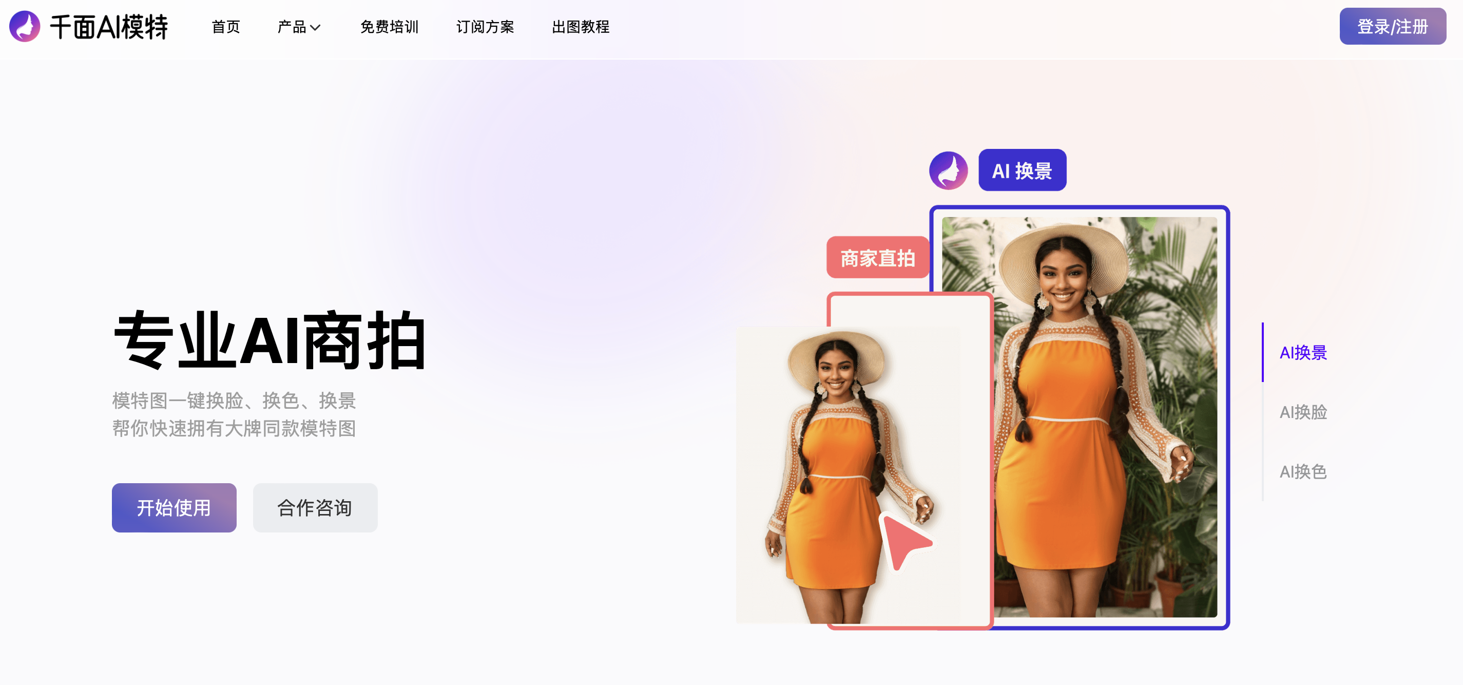 只需要简单的描述就可以生成面容、风格、姿势不同的模特图,让模特身处于各种场景下多角度展示商品,千面已经成功为上千商家用户解决了模特拍摄问题。