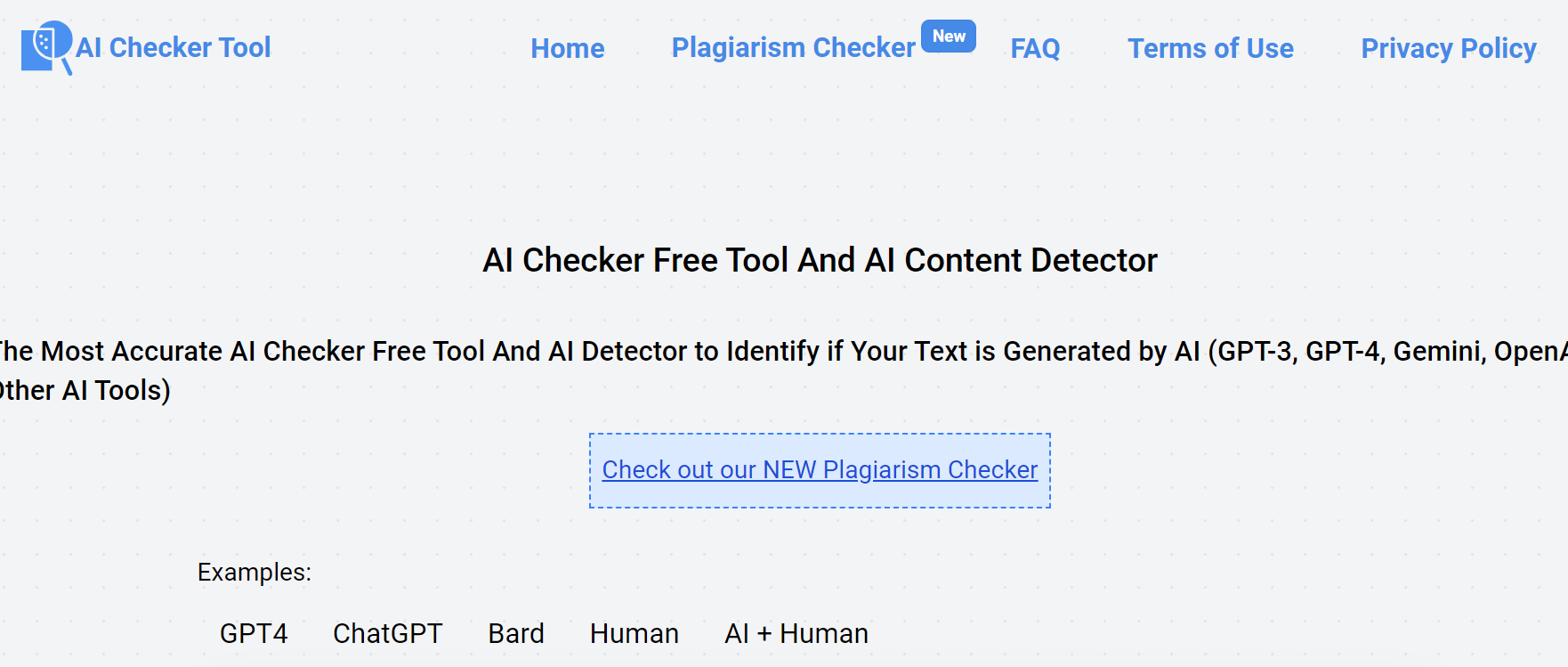 AI Checker Tool是一款基于人工智能的AI免费文本检测工具,可识别文本是否由人类编写,或是AI生成的,以及可能存在的组合情况。