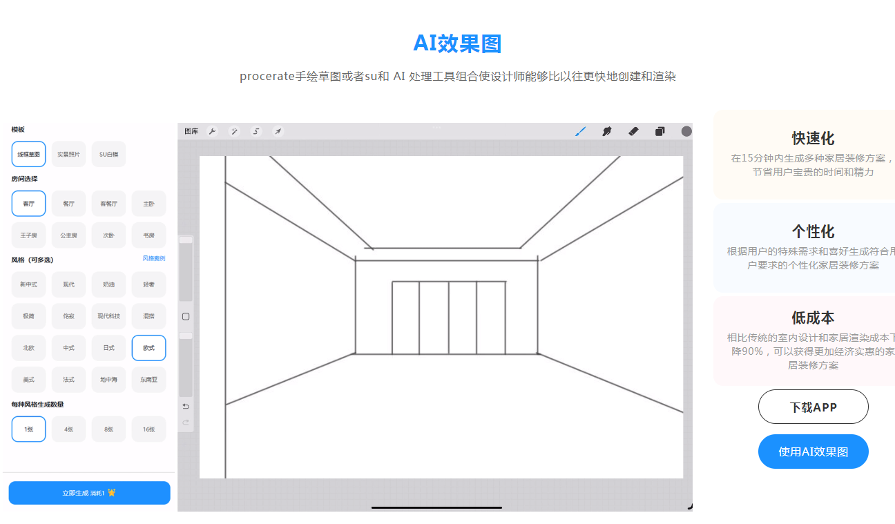 晨羽AI效果图是一款专为家装设计师和业主打造的移动端装修设计工具。它集成了智能算法,可根据用户所提供的房屋面积、户型和风格等各种要素。