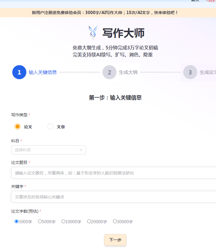 文章写作神器,根据论文名称和关键字一键生成大纲,再生成整篇论文,已有文案还可以一键续写、扩写、润色、降低重复率。