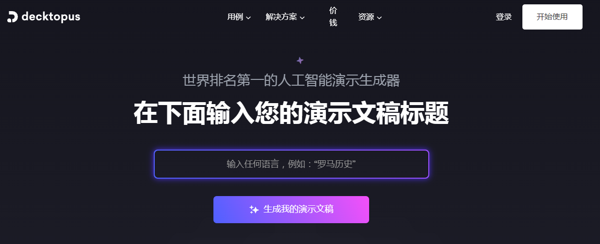 用户只需在Decktopus AI网站上输入演示文稿的标题,然后点击“生成我的演示文稿”按钮。接下来,用户可以根据AI提供的建议进行编辑和定制,添加或修改内容,以及调整设计布局。整个过程简单快捷,大大缩短了传统演示文稿准备的时间。