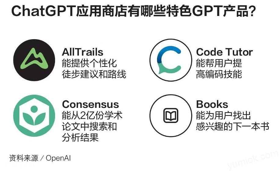 新开张的GPT商店概念类似苹果和谷歌应用商店,有特色GPT产品,如能提供个性化徒步建议和路线的产品。公司计划第一季为GPT用户推出收益计划,GPT产品创建人可根据GPT被使用的情况,获得相应报酬。