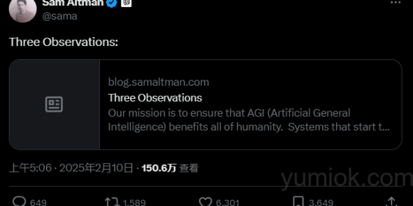2025年2月10日凌晨,OpenAI联合创始人兼首席执行官Sam Altman在其个人博客发布了一篇深度文章《Three Observations》,引发了全球科技界和经济界的广泛关注。在这篇文章中,Altman提出了关于人工智能(AI)发展的三个核心观察,并探讨了这些观察对全球经济和社会的深远影响。