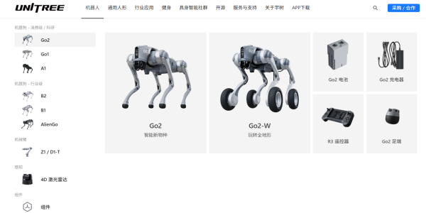 宇树科技的消费级四足机器人主要包括Go系列,如Go1和Go2。这些机器人以亲民的价格和丰富的功能受到消费者喜爱。Go2机器狗不仅具备中英文聊天功能,还能灵活倒立行走、翻身起立、越障攀爬等。此外,Go系列还配备了4D超广角激光雷达L1,具备360°×90°的感知能力,能够满足家庭陪伴、户外探险等场景需求。