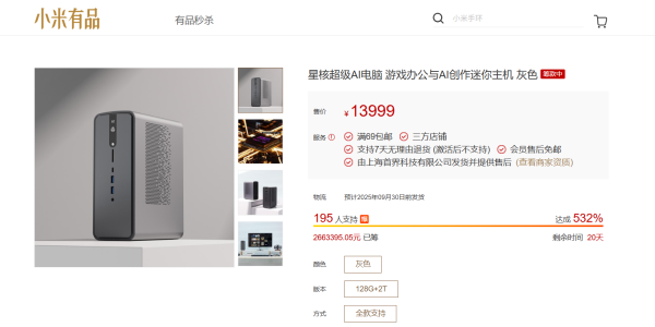 近日,小米有品众筹上线了一款迷你机——星核超级AI电脑,定价13999元。这款电脑凭借其强大的硬件配置和丰富的AI功能,迅速吸引了市场的关注,被认为开启了个人AI计算的新纪元。