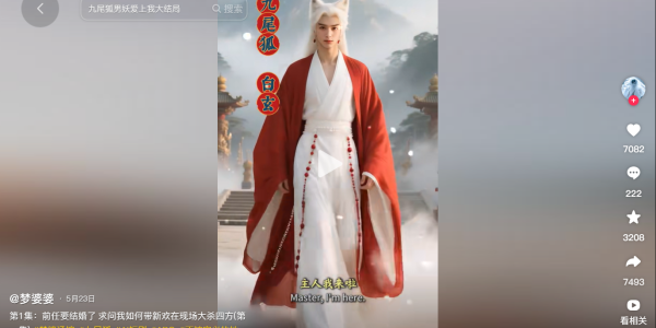近期,一部名为《九尾狐男妖爱上我》的AI生成短剧在社交平台引发热议,其在抖音单平台的播放量已突破1.8亿次。这部短剧从场景到角色均由AI生成,自5月下旬上线以来,已连续更新27集,凭借其独特的“猎奇”元素和高频反转剧情,成功吸引了大量观众的目光。