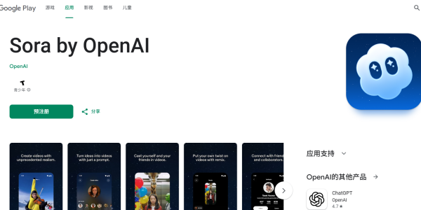 Sora by OpenAI 安卓版预注册开启,AI 视频创作迈向新阶段近日,OpenAI 的 AI 视频生成应用 Sora by OpenAI 即将登陆安卓平台的消息引发了广泛关注。目前,该应用已在谷歌 Play 商店上线,但仅对美国和加拿大地区的用户开放预注册。这标志着 Sora 这款在 iOS 平台上表现亮眼的 AI 视频生成应用,即将拓展到更广泛的用户群体中。