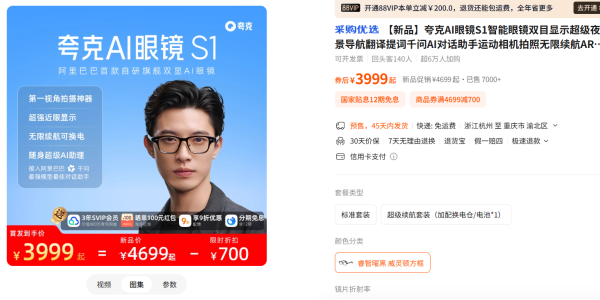 夸克AI眼镜S1系列搭载了高通AR1旗舰芯片和恒玄BES2800芯片的双芯设计,搭配安卓加RTOS双系统,支持双显双光机和合像距调节技术,显示远近可调节,亮度可达4000尼特,即使在户外强光环境下,交互信息也能清晰显示。此外,该产品还引入了手机级影像能力,配备Super Raw暗光增强技术和双重防抖系统,显著提升了暗光环境下的拍摄画质与稳定性。