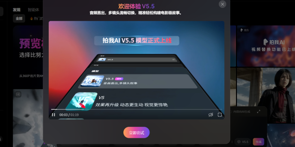 V5.5版本支持一键直出多个分镜,用户可选择5秒、8秒、10秒长度的视频。AI能够自动设计推拉、摇移、切换、景别变化等镜头语言,其运镜节奏更自然,紧贴真实制作逻辑。这不仅提升了视频整体的观影流畅度,更从叙事逻辑上拓展了画面的边界。过去,创作者需要依赖摄影师和剪辑师的配合,才能完成具有“黄金三秒开场节奏”的镜头,现在AI就能自动生成这一部分内容。