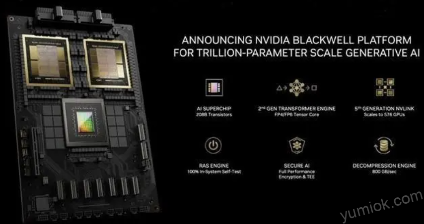 黄仁勋登台时幽默地表示:“我希望你们意识到这不是一场演唱会。”这番话不仅是对与会者的提醒,更是对公司实力的自信展示。新款B200芯片集成2080亿个晶体管,相较于上一代产品翻倍有余,彰显出英伟达在技术创新上的卓越突破。这款芯片支持在万亿参数级别的大型语言模型(LLM)上构建和运行实时生成式AI应用,效率显著提升。据透露,搭载36个Grace Blackwell超级芯片的全新GB200 NVL机架级系统性能比相同数量H100 Tensor Core GPU用于推理的情况提高了30倍,并且在成本及能耗方面实现了大幅度削减。