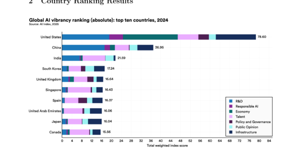 除了美国、中国和印度外,其他国家如韩国、英国、新加坡和西班牙等也在这份榜单中表现出色。这些国家在人工智能领域的研究、投资和应用等方面都取得了显著进展,显示出它们在人工智能领域的潜力和努力。例如,韩国在半导体技术和人工智能硬件方面具有优势;英国在人工智能的学术研究和金融领域的应用方面表现突出;新加坡则在人工智能的政策支持和数字基础设施方面具有优势。