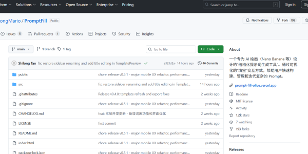 自PromptFill在GitHub项目开源以来,已迭代至v0.5版本,UI大幅优化,支持桌面与手机双端适配。开源社区的活跃氛围,让该工具能够持续优化。开发者还持续更新更多预设模板,欢迎用户贡献改进建议。这种开源模式,不仅推动了工具的快速迭代,也为AI创作的普及提供了有力支持。