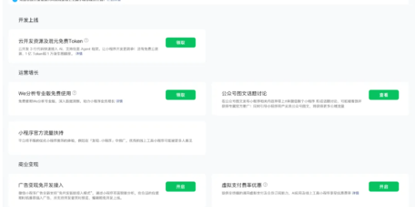 微信将支持安卓、iOS、鸿蒙等全终端的虚拟支付与会员订阅功能,并提供限时优惠费率。同时,平台推出 “免开发智能接入模式”,简化广告变现流程,提升变现效率。此外,平台还提供专属流量激励,优秀的工具小程序将有机会获得专属推荐入口和公域流量曝光。