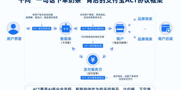 2026年1月16日,支付宝联合千问App、淘宝闪购、Rokid、大麦、阿里云百炼等伙伴,正式发布ACT协议(Agentic Commerce Trust Protocol,智能体商业信任协议)。这是中国首个面向Agent商业需求设计的开放技术协议框架,旨在解决AI智能体在跨平台执行任务时的效率和可信问题,推动AI与电商、外卖等服务平台的协同作业,打造一个安全、高效的商业信任网络。