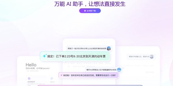 据悉,红手指 Operator 支持买票、打车、订外卖、资料搜集、信息查询等多种生活服务场景。用户只需通过聊天方式下达指令,Operator 即可自动调用相关 App 完成任务。